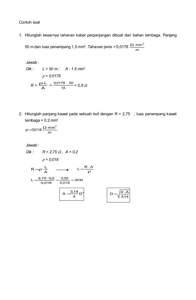 Rumus Hambatan Kawat Penghantar Arus Listrik Idschool from idschool.net Kawat perak ini dipasangkan di dalam tabung porselin yang diisi dengan pasir putih sebagai pemadam busur api, dan menghubungkan kawat tersebut pada kawat fasa, sehingga arus. Jika tahanan kawat perak pada temperatur 0 o c adalah 1,25 ohm dan koefisien temperatur terhadap tahanan kawat adalah 0,00375/ o c, maka temperatur yang menyebabkan harga tahanan kawat menjadi dua kali lipat adalah. 130 jika tahanan kawat perak pada temperature 0 adalah i50 dan koefisien temperature terhadap tahanan kawat tersebut adalah i01k7579 maka temperature yang menyeba harga tahanan kawat menjadi dua kali. Dengan denikian tegangan sumber ini bisa menghasilkan arus listrik pada tahanan bahan. Jika tahanan kawat perak pada temperatur 0oc adalah 1,25 ohm dan koefisien temperature terhadap tahanan kawat tersebut adalah 0,00375/0c, temperature kawat tersebut menjadi dua kali lipat adalah … Arus dan tahanan.pdf from physics 123 at university of north sumatra. Sumber energi seperti tegangan listrik akan menghasilkan daya listrik sedangkan beban yang terhubung dengannya akan menyerap daya listrik tersebut. Academia.edu is a platform for academics to share research papers.
